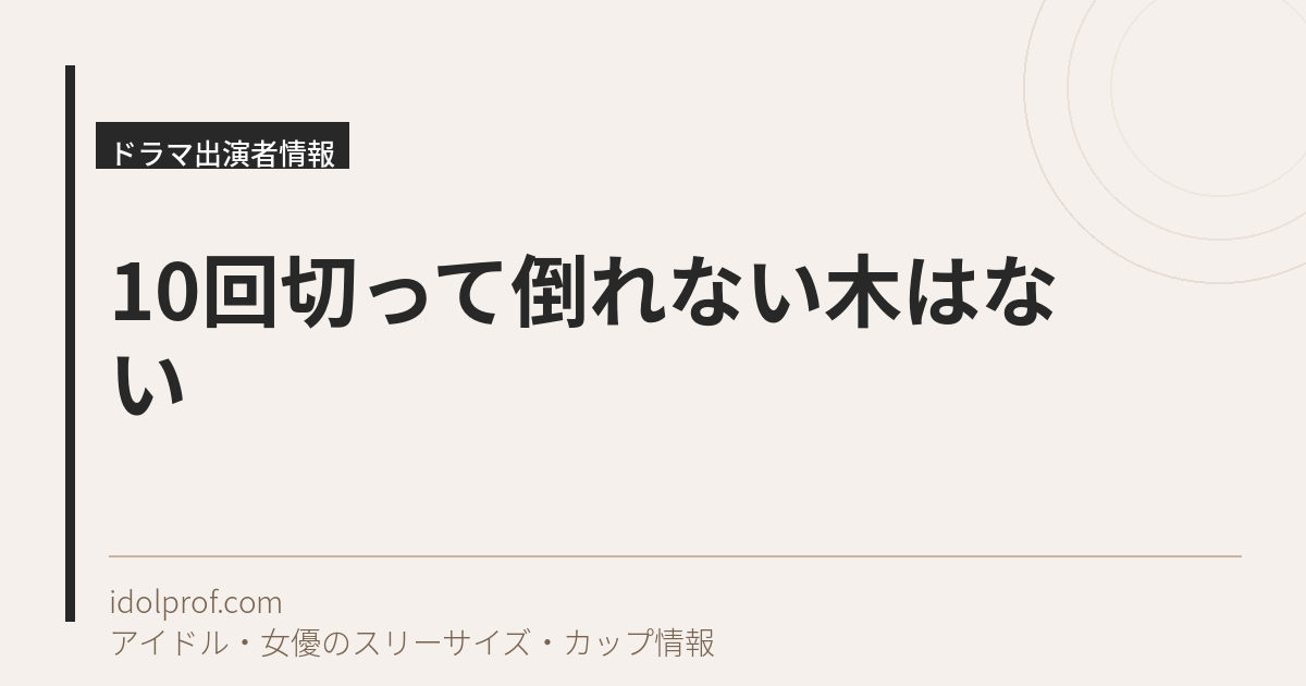 10回切って倒れない木はない ドラマ 2026.04.12 10回切って倒れない木はない 出演者情報(スリーサイズ、カップ情報) ※年齢はドラマ放送時の年齢 役名 名前 年齢 身長 体重 B W H カップ 河瀬桃子 仁村紗和 31 164 45 77 58 82 幼い頃に母を亡くし、心優しい父と姉の三人で、力を合わせて仲良く暮らしていた。 河瀬杏子 入山法子 40 168 81 62 88 A 桃子の姉。心優しく家族の為に献身的で、貧しいながらも桃子の医者になりたいという夢を応援してきた。 青木未希 橋本マナミ 41 168 54 89 62 88 H ミンソク(照)の実母。絵本作家になるのが夢で、幼い照のためによく絵本を描いていた。